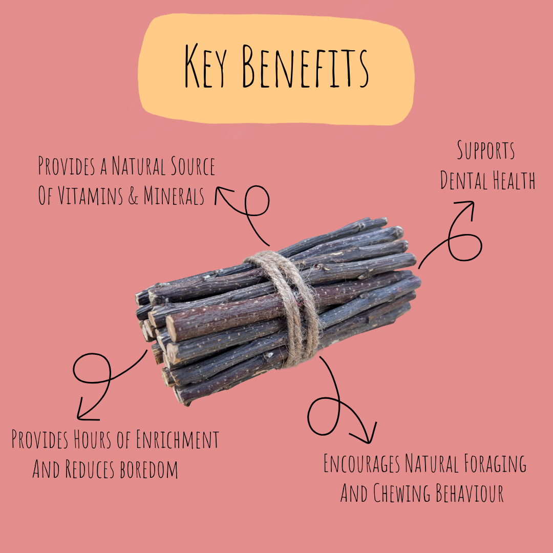 Our delicious apple wood sticks add natural enrichment to your pets daily routine and make the perfect crunchy treat for them. They are a deliciously natural way to add variety to your pets diet. Whilst also providing mental stimulation and encouraging natural foraging and chewing behaviours, helping to keep their teeth trim and healthy.